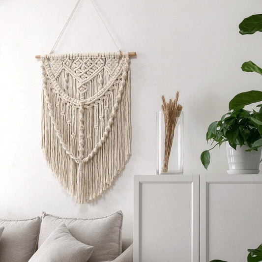 Chez Esprit Macramé, nous composons une collection variée de tentures murales au design épuré, soigneusement sélectionnées pour s'harmoniser avec tous les styles décoratifs. Du bohème chic au scandinave minimaliste, découvrez comment ces créations naturelles redéfinissent l'art de la décoration murale.