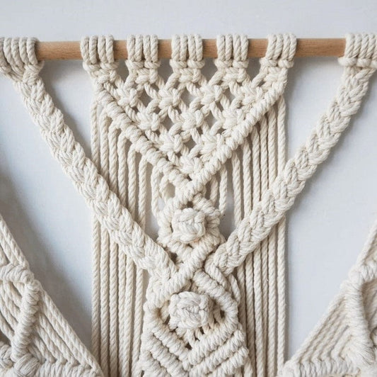 La fixation murale doit être adaptée au poids de votre macramé mural. Les créations légères se contentent de crochets adhésifs, tandis que les pièces imposantes nécessitent des fixations dans le mur.