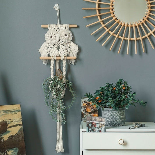Hibou en Macramé Mural Chic